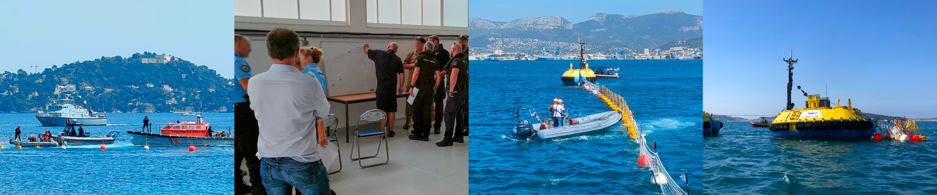 For the protection of water bodies and client assets, Kietta developed a solution based on its proprietary USV technology paired with a repositionable fencing (boomer). The barrier length is typically 1km and is made up of float + net (flexible assembly). This system enables to stop or significantly slow down a motor boat such as a semi-rigid boat or jet ski and has the following advantages: